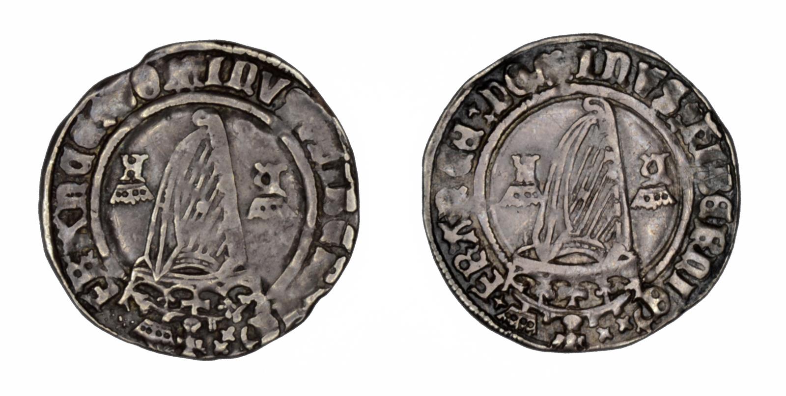 Ireland, Henry VIII, two silver groats, first harp issue (1534-40), mm. crown, initials HK (Henry and Katherine Howard) (S 6474). One better than very fine, the other about very fine. [2]