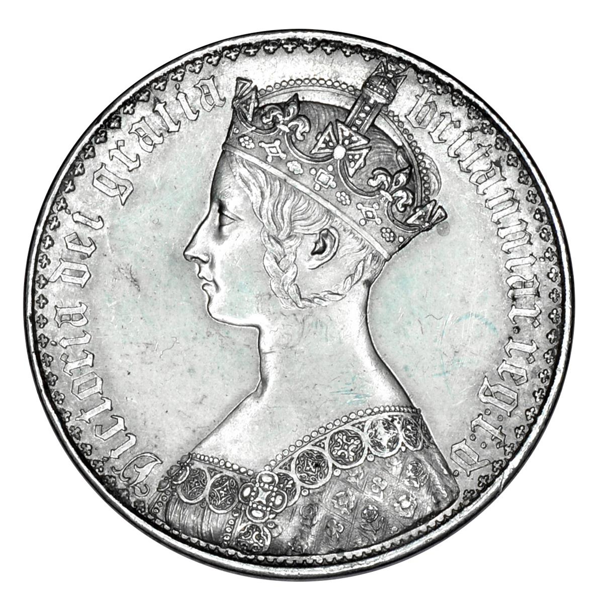 Victoria: silver crown, 1847, 'gothic' type, edge UNDECIMO (S 3883). About extremely fine.