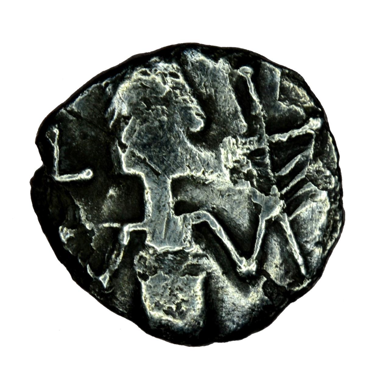 Anglo Saxon kingdoms: silver sceat, primary series W, c. 680-710, half length figure with two crosses, rev. cross crosslet on saltire, 1.4g. About very fine.