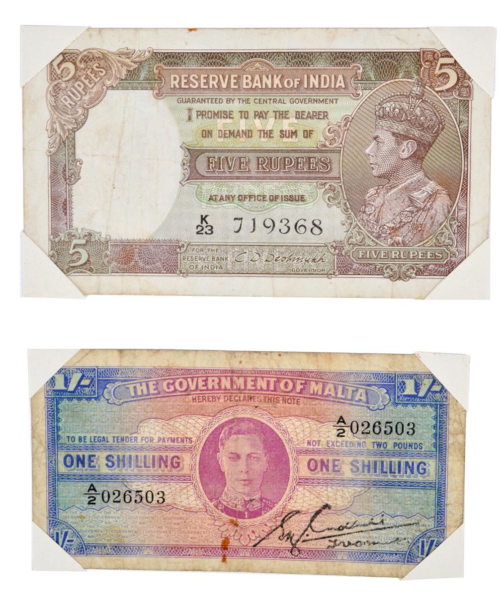 A good collection of banknotes, domestic, Commonwealth and foreign, including: India, Reserve Bank, C.D. Deshmukh, five rupees, K23 719368, very fine; Canada, Bank of Canada, Beattie-Coyne, one dollar, 1954, 'devil's face' variety, TA 3274574, very fine or better; Germany, Wittenberg Prisoner of War Camp, one pfennig, 1st January 1916, very fine or better; and others including Weimar inflationary currency, Russia, and the Channel Isles, in an album, various grades, mainly high. [approx. 180]