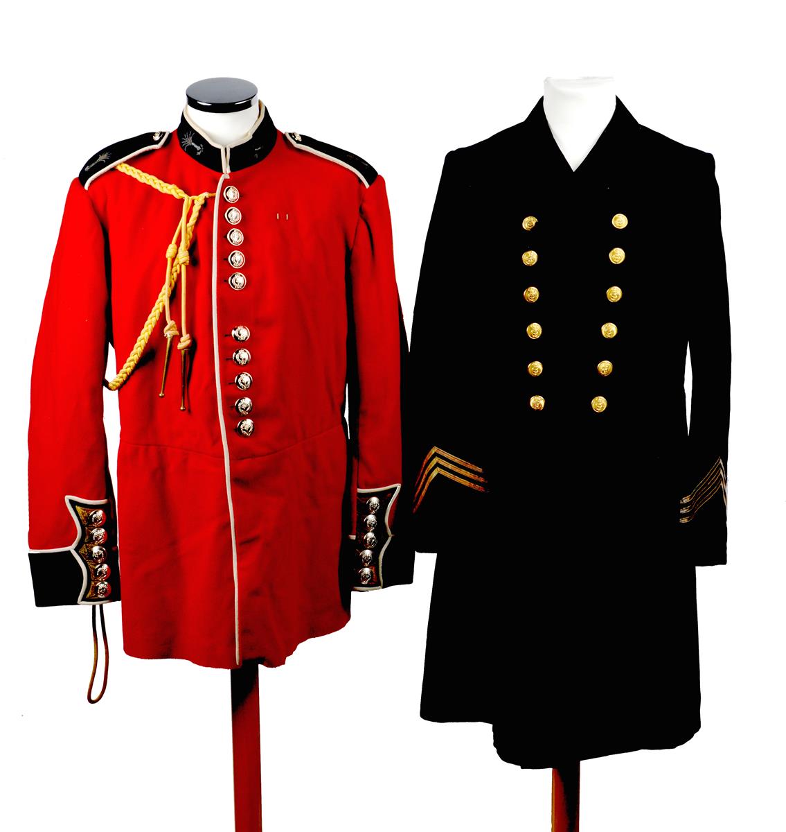 The Pacific Steam Navigation Company: an officer's double breasted blue frock coat, gilt company buttons, three chevrons to each cuff; together with a Welsh Guards other ranks tunic. [2]