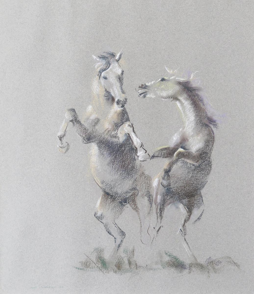 ‡John Skeaping RA (1901-1980) Fighting Stallions Signed and dated 76 Pastel on grey paper 54 x...