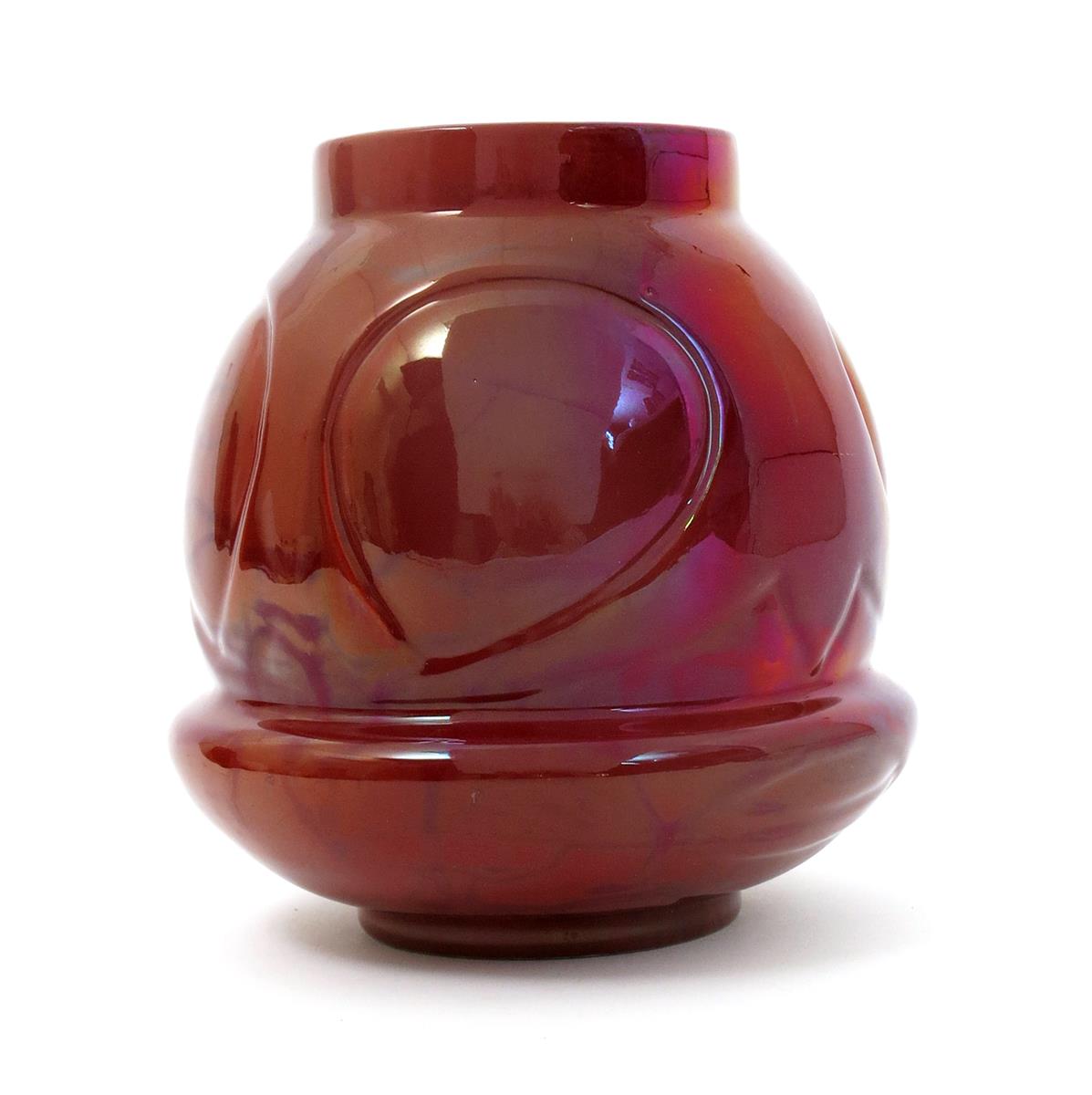A Carter's Poole Pottery lustre vase designed by Owen Carter, swollen ovoid form with collar rim, covered in a red lustre glaze, indistinct impressed roundel mark to base, 16.5cm. high