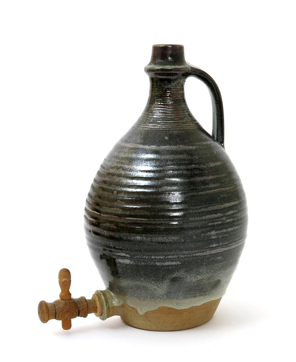 a large Lowerdown Pottery stoneware flagon, covered to the foot with a running Dolomite and tenmoku glaze, impressed DL seal 42cm. high
