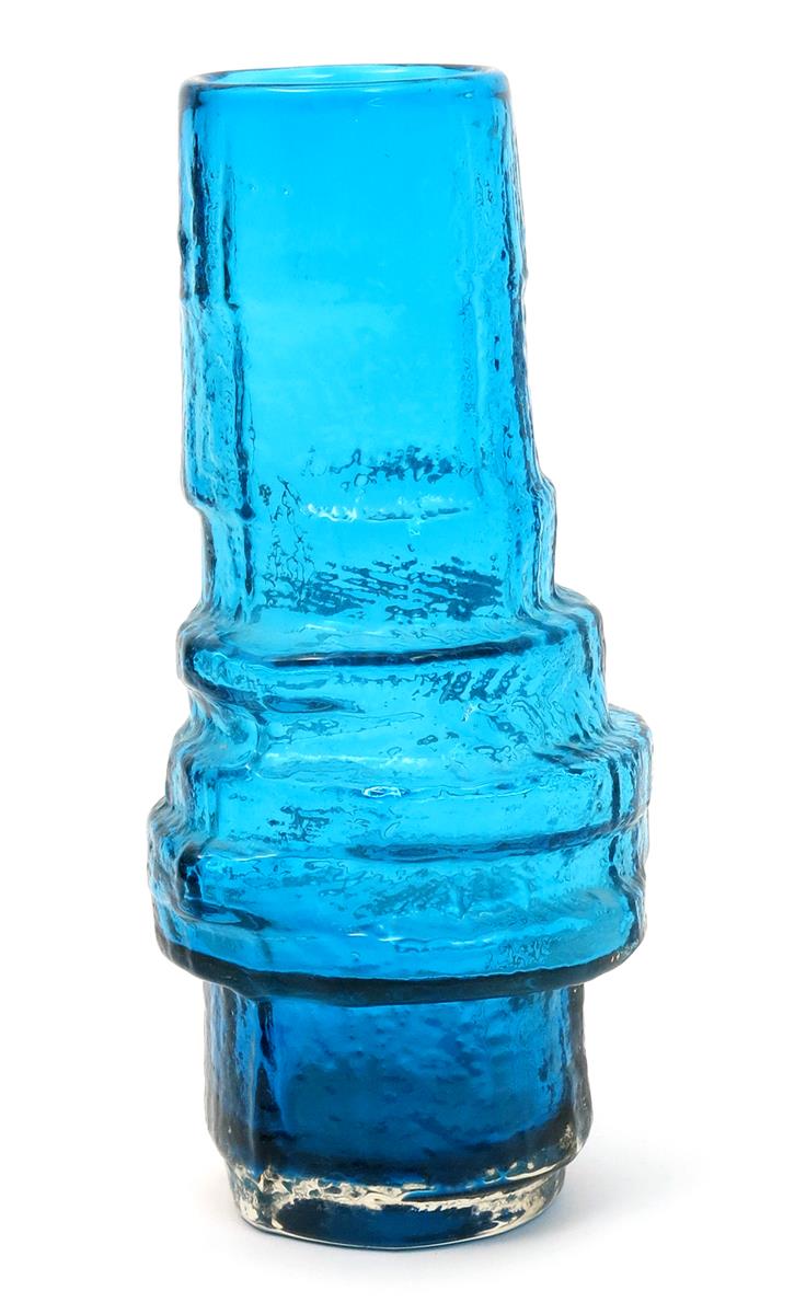 A Whitefriars Kingfisher Blue glass Hoop vase designed by Geoffrey Baxter, unsigned, 29cm. high