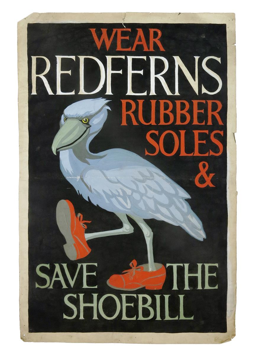 an original poster design in gouache on paper, made for Redferns Rubber Soles,