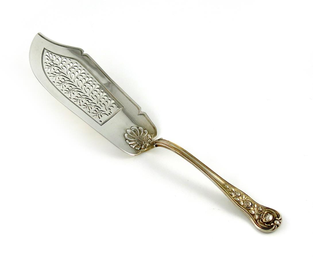 A William IV silver Rose pattern fish slice