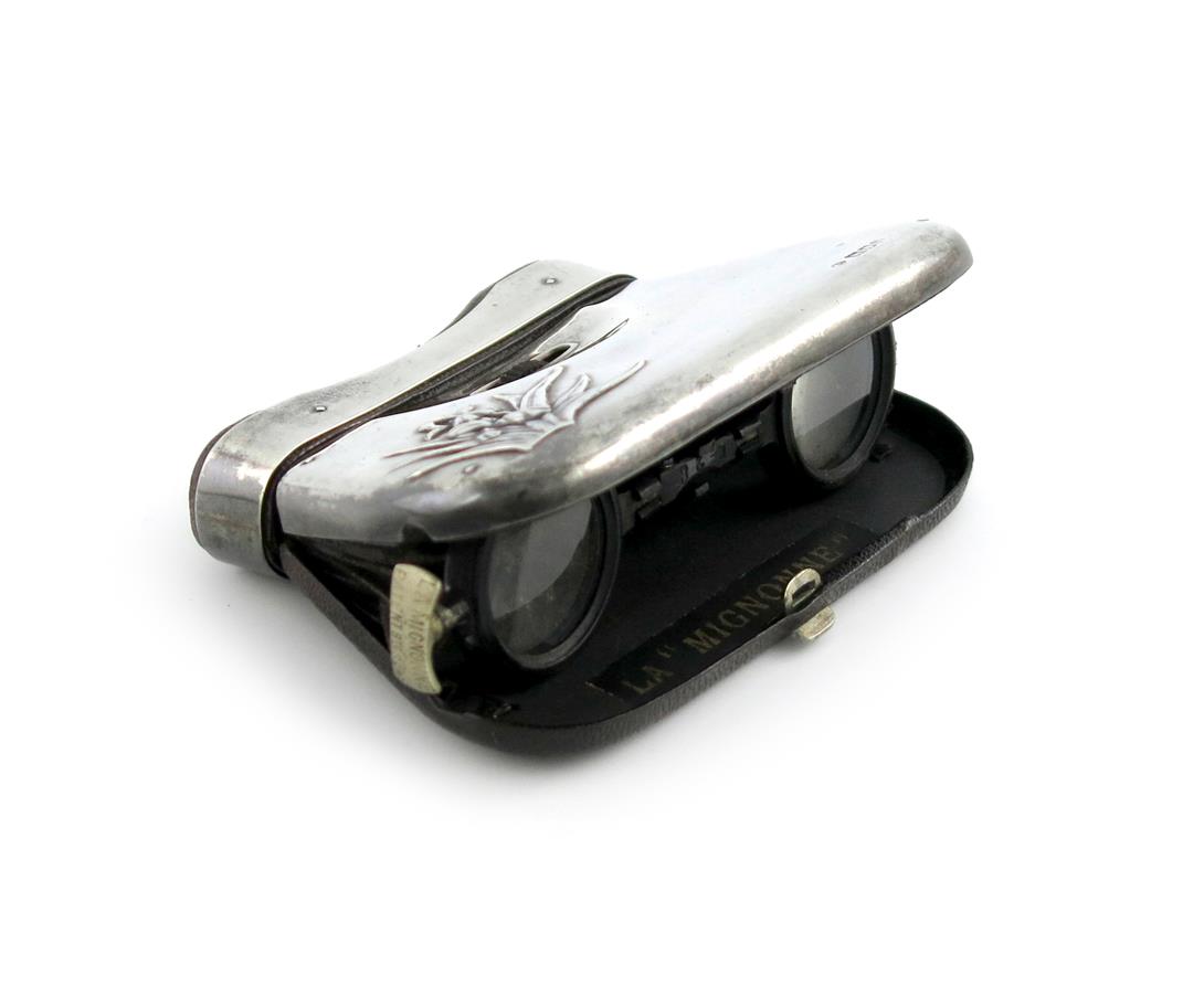 A pair of Edwardian silver-mounted French opera glasses, 'La MIGNONNE',