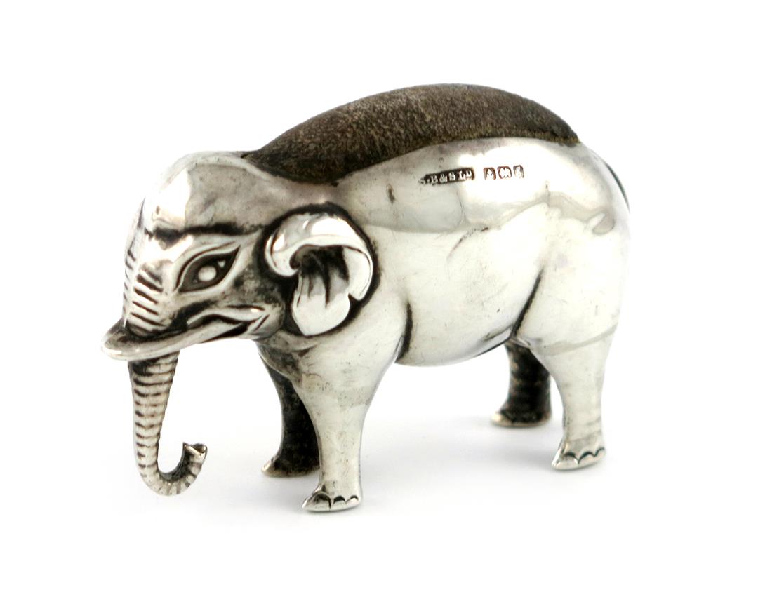 An Edwardian novelty silver elephant pin cushion