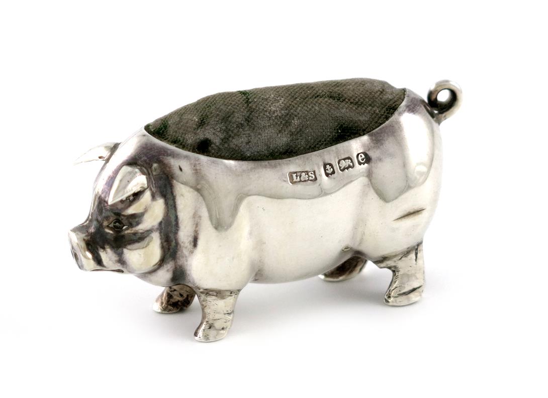 An Edwardian novelty silver pig pin cushion