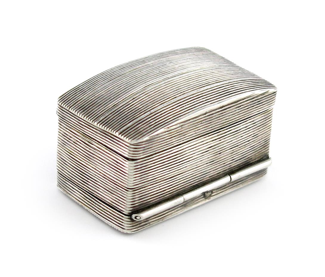 rectangular form, reeded decoration, hinged cover and base, length 4.8cm, approx. weight 1.2oz.