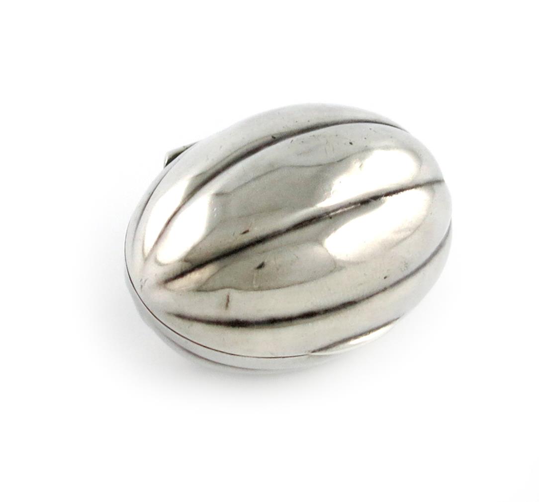 fluted melon form, the hinged cover opens to reveal a hinged steel grater, length 5.2cm, approx. weight 1.5oz.
