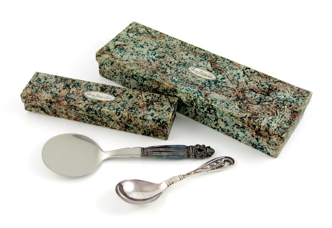 the pierced handle with bud decoration, plus a Georg Jensen silver-handled Acorn pattern serving slice, with a stainless steel blade, in the original cardboard boxes, approx. weighable 1oz. (2)