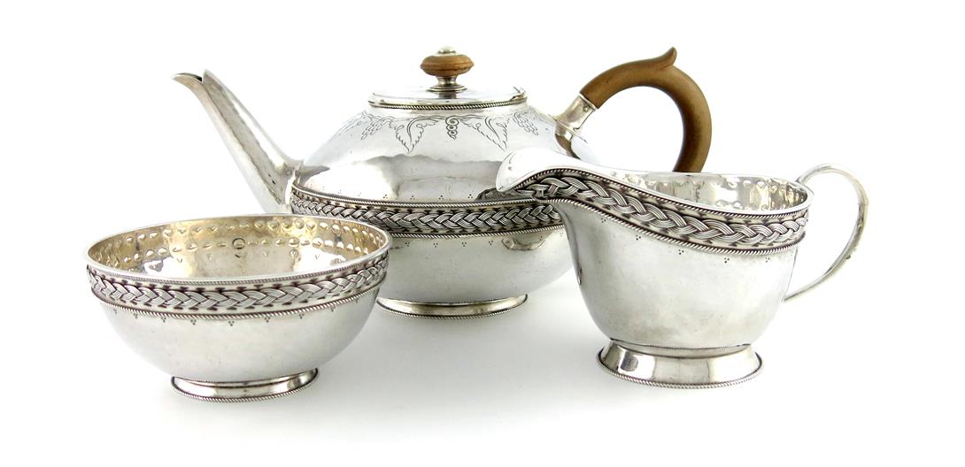 A three-piece Arts and Crafts silver tea set,