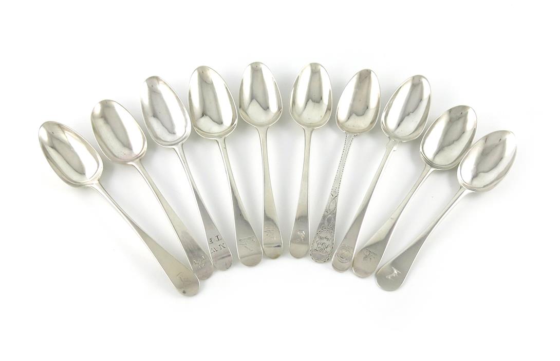 including one with shoulders, one with Bright -cut decoration and others with crests and initials, approx. weight 19oz. (10)
