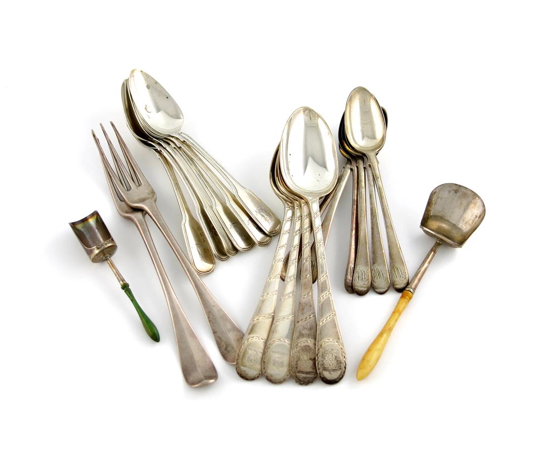 λA mixed lot of silver flatware,