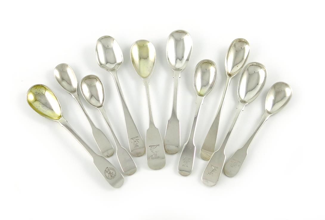 Old English and Fiddle patterns, some terminals with crests, approx. weight 4.5oz. (10)