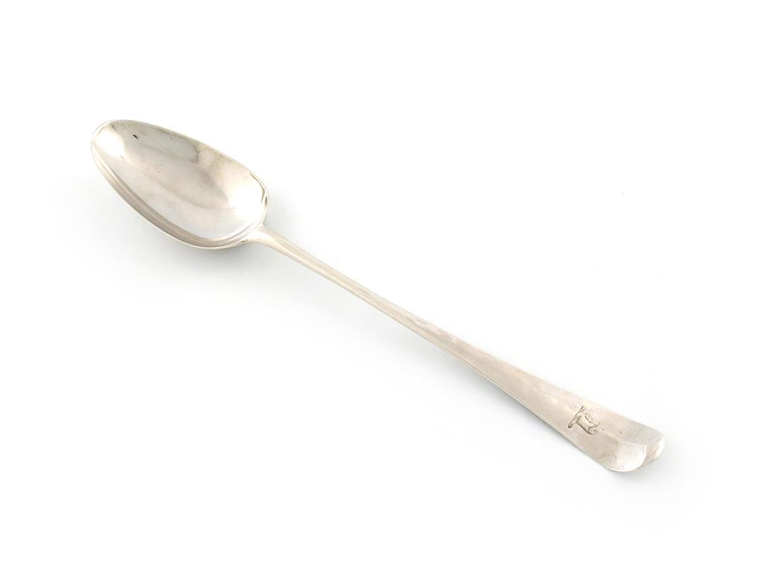 the terminal with a crest, the reverse of the bowl with foliate scroll decoration, length 31.8cm, approx. weight 4oz.