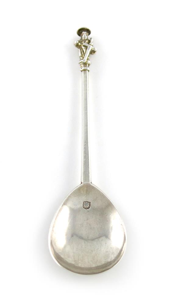 fig-shaped bowl, tapering faceted stem, the finial with traces of gilding and with nimbus with a dove, length 17.7cm, approx. weight 1.6oz.
