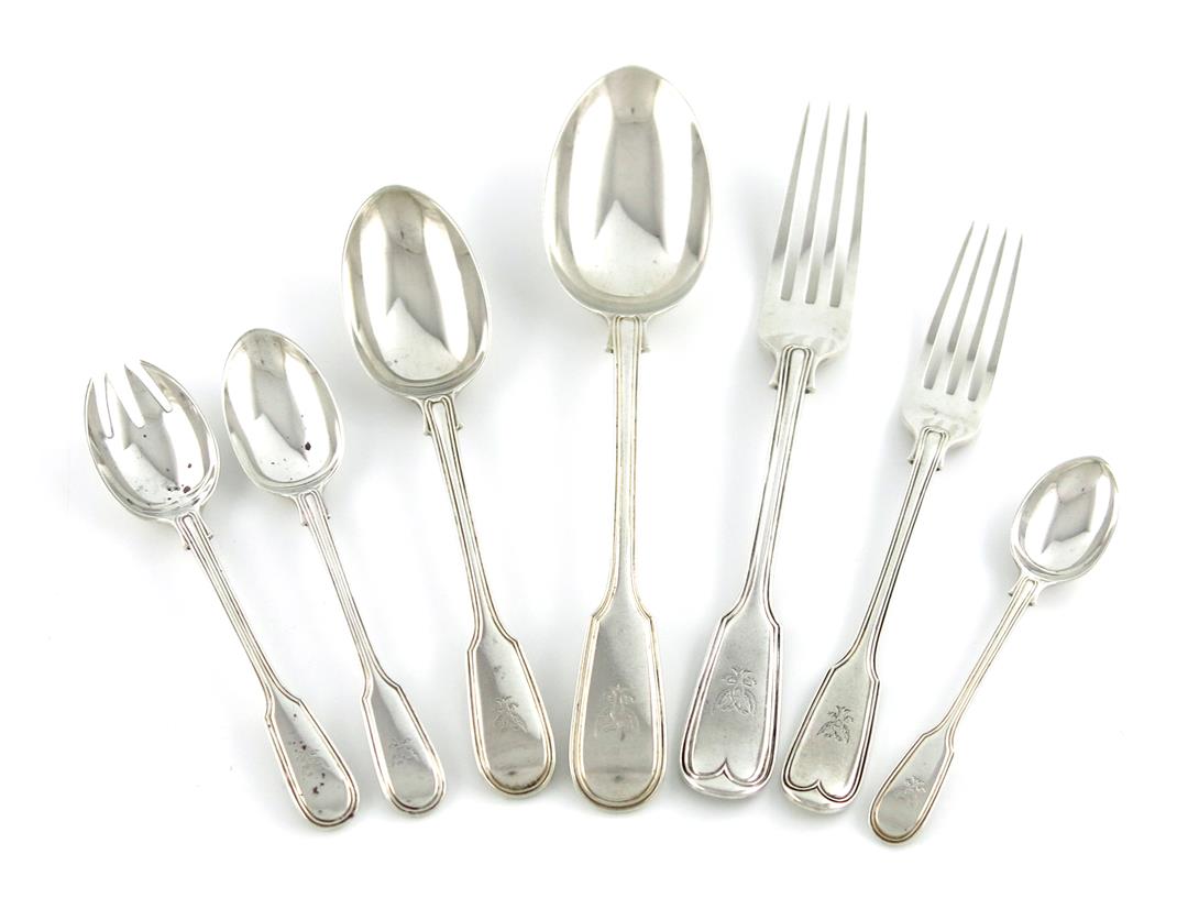 A Victorian silver part canteen of Fiddle and Thread pattern flatware,