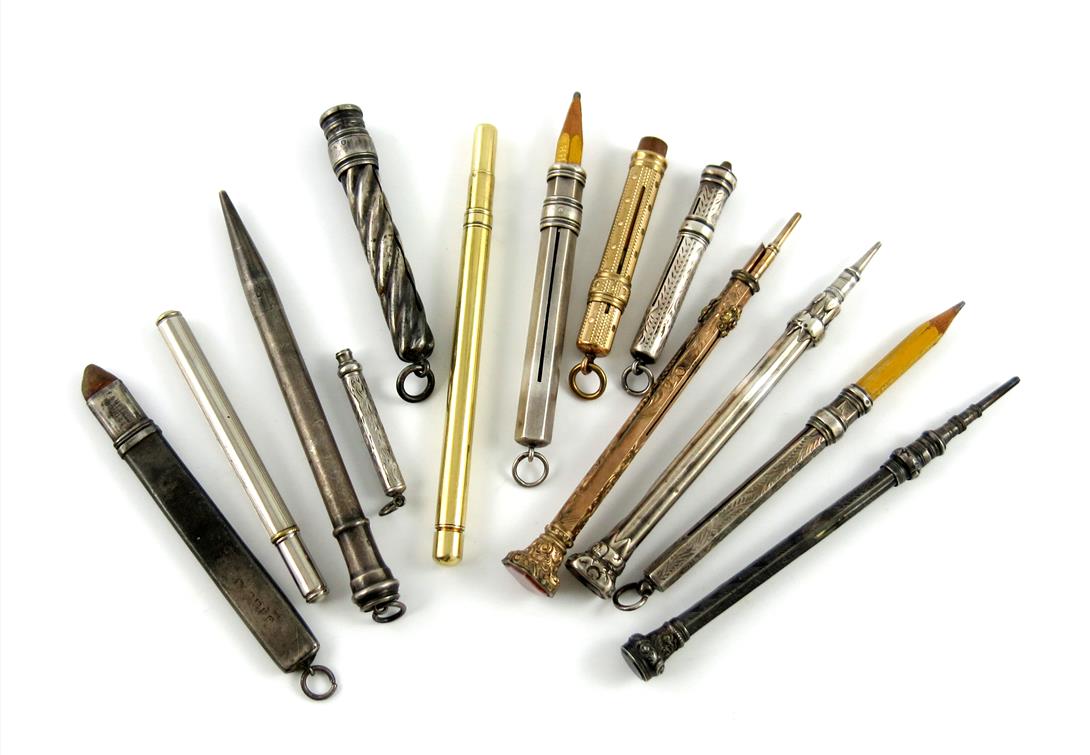 A small collection of silver, silver-gilt and gilt metal pencils,