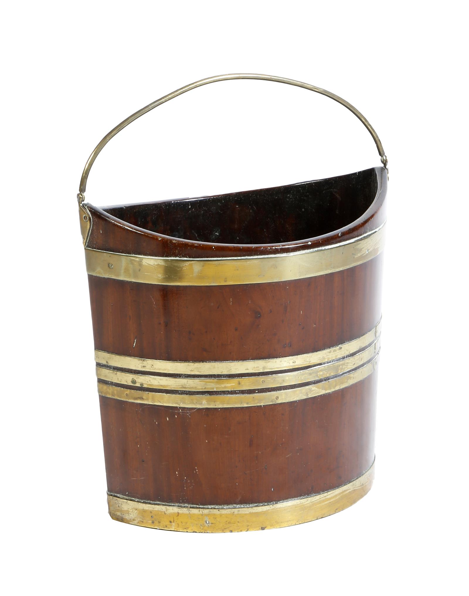 A 19th century navette shape mahogany and brass mounted peat bucket