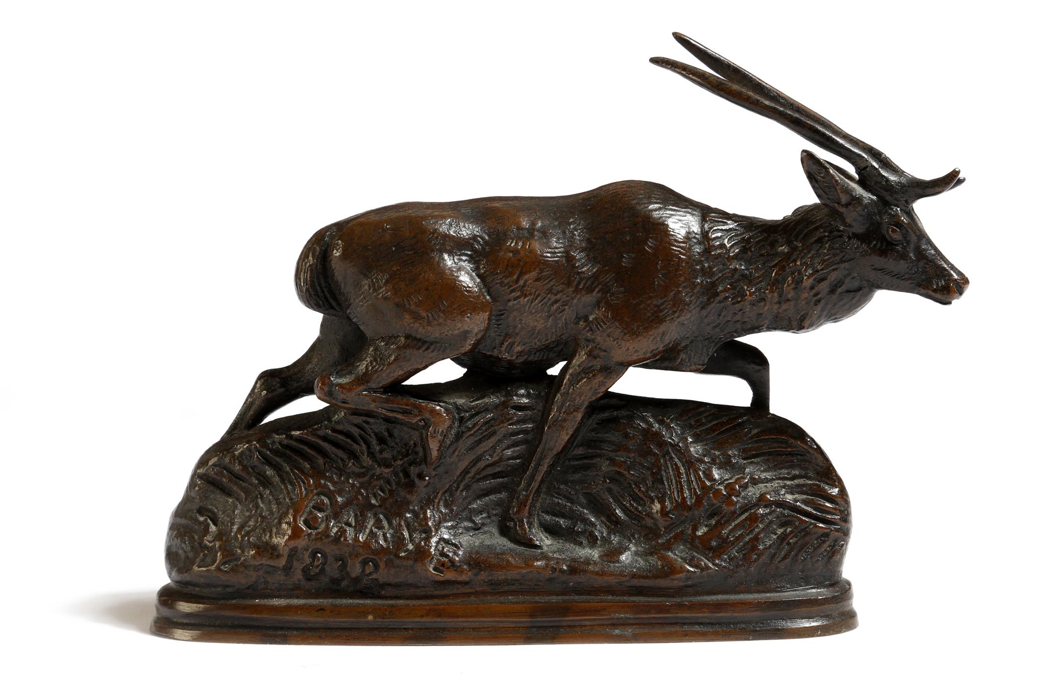 Antoine-Louis Barye (French 1795-1875). A bronze model of an Axis deer