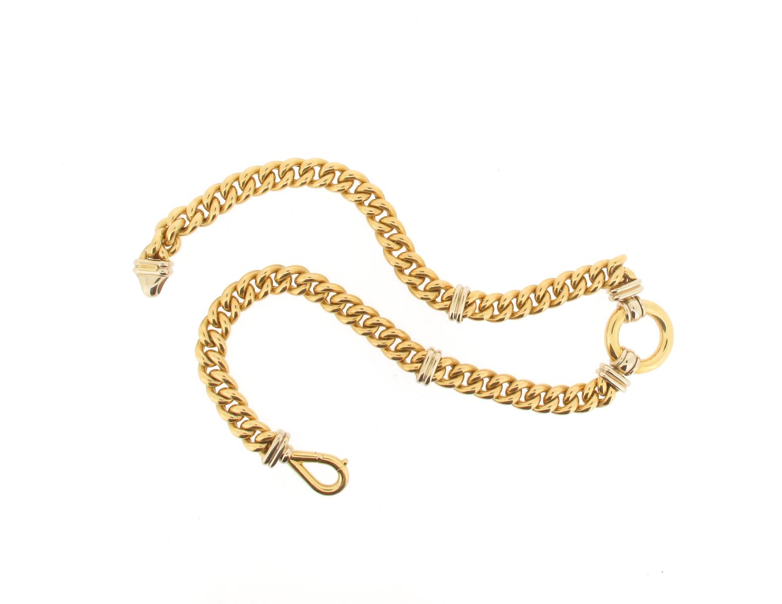 A two-colour gold curb-link chain, with large central crew-link, clasp stamped 750 and Italian maker's mark 177 VI for Signoretti Renato, Vicenza, applied with company logo, 46cm, 80g