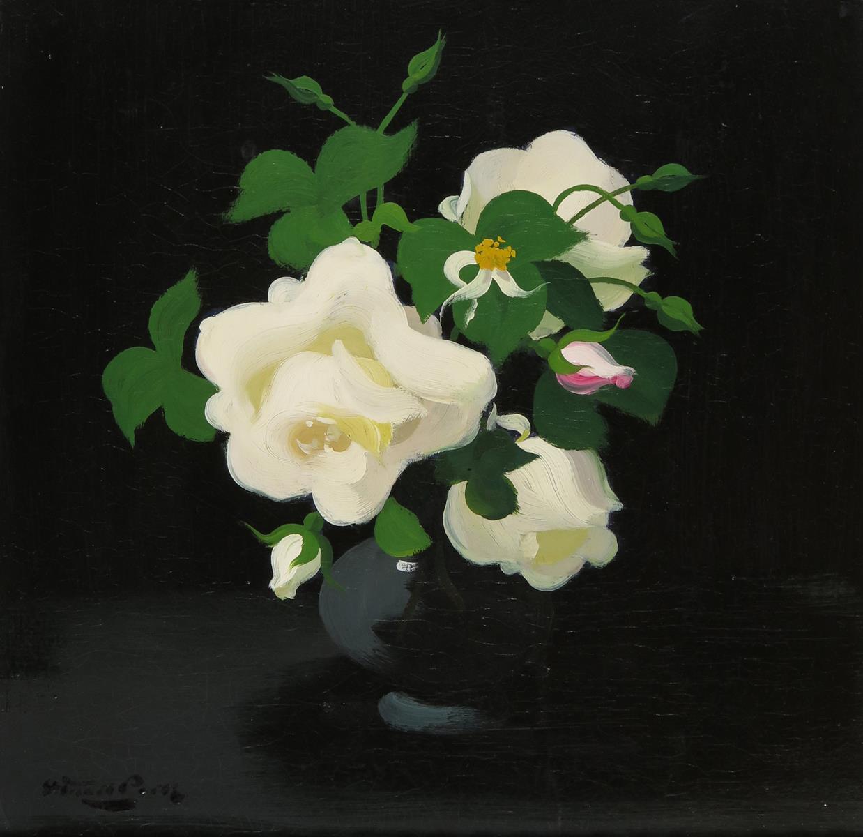 ‡James Stuart Park (Scottish 1862-1933) White roses Signed Oil on canvas 40 x 40cm