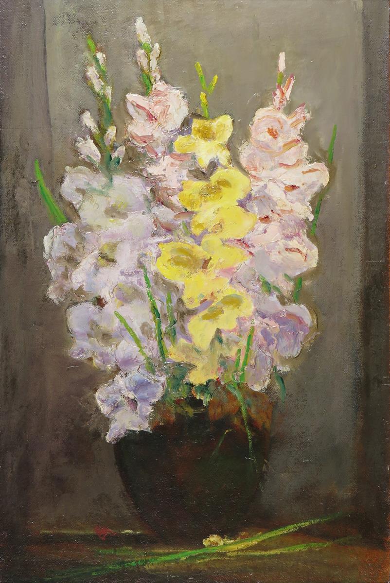 ‡Charles T. Harvey RBA (1875-1964) Gladioli in a vase Inscribed verso Oil on canvas 78 x 50cm