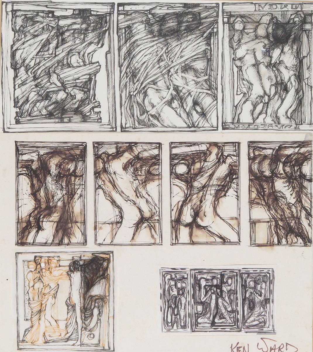 ‡Ken Ward (20th Century) Figure studies Signed Pen