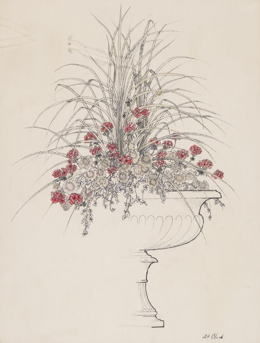 ‡Stewart Black (Scottish b.1938) Studies of Geraniums in an urn A pair