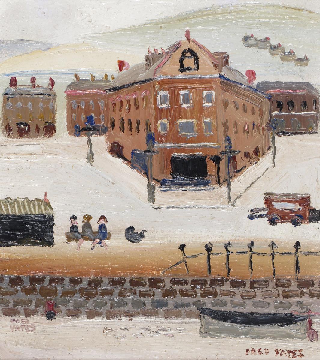 ‡Fred Yates (1922-2008) On the Promenade Signed twice Oil on canvas-board 22 x 20cm