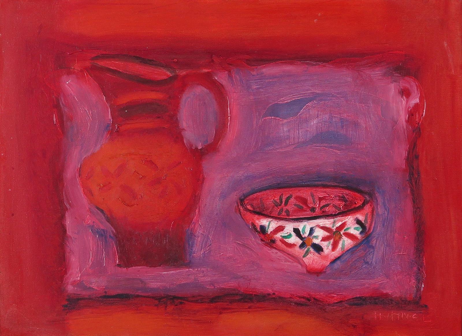 British School 20th Century Still life of a pink bowl and jug Signed indistinctly Oil on canvas...