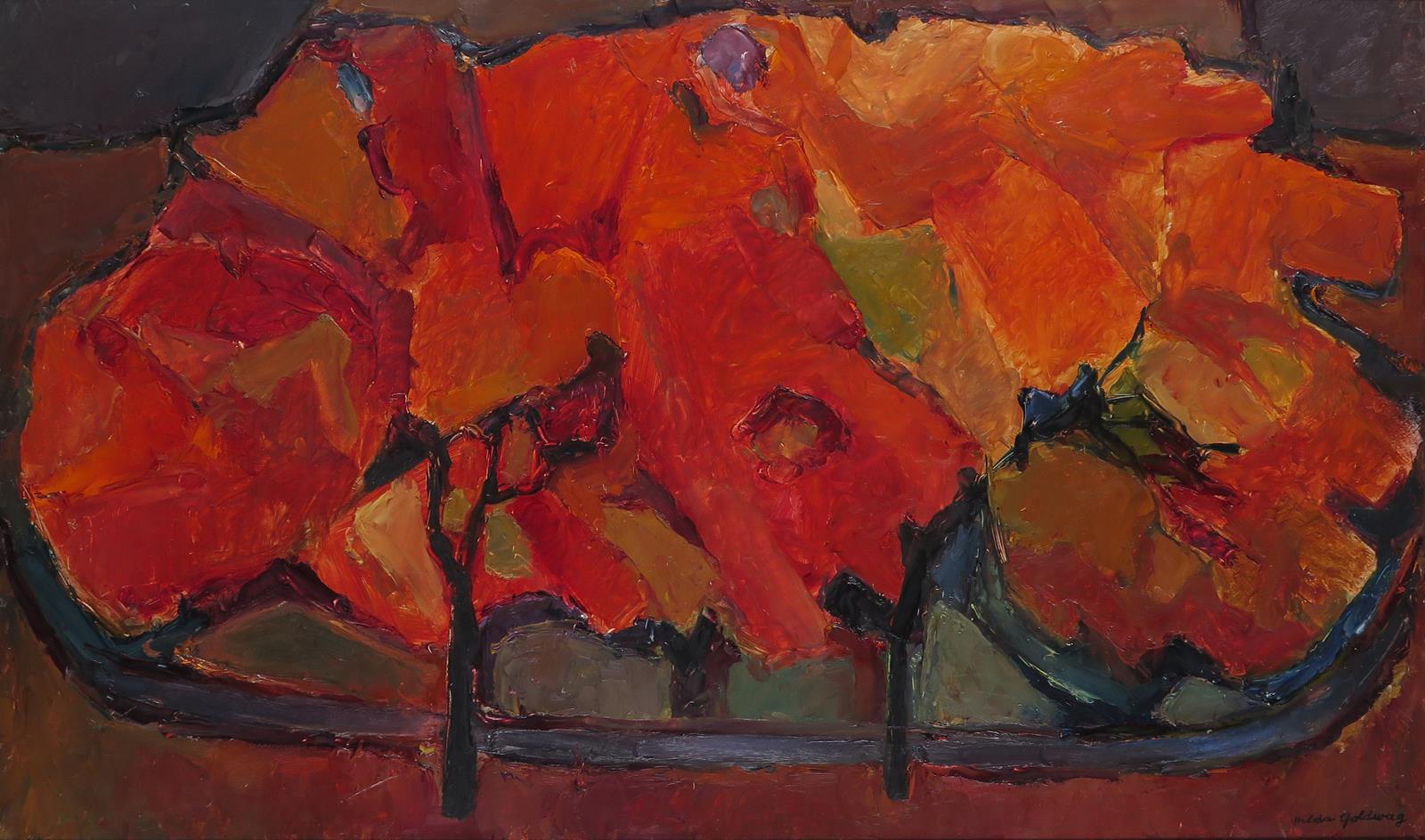 ‡Hilda Goldwag (Scottish 1912-2008) Still life Oil on board 60 x 100cm