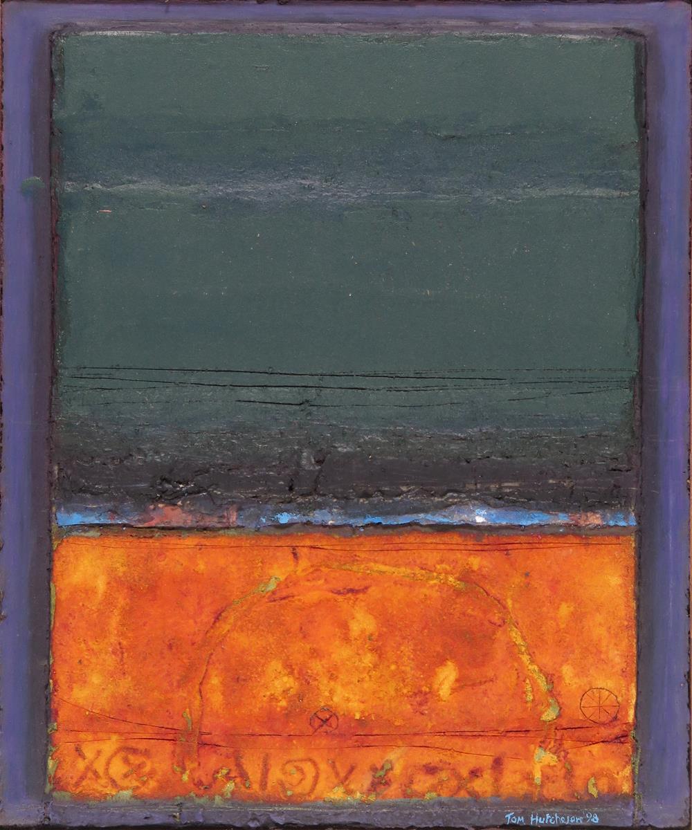 ‡Tom Hutcheson (Scottish 1922-1999) Orange place with ritual marks Signed and dated 98 Mixed...