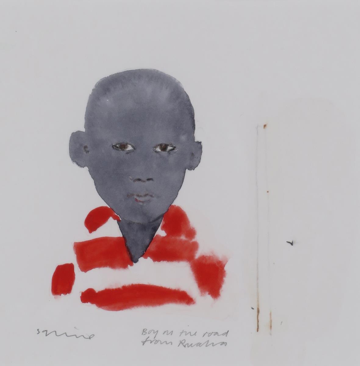 ‡Andrew Squire (Scottish b.1954) Boy on the roof from Ruaha II Mixed media Signed and titled 16 x...