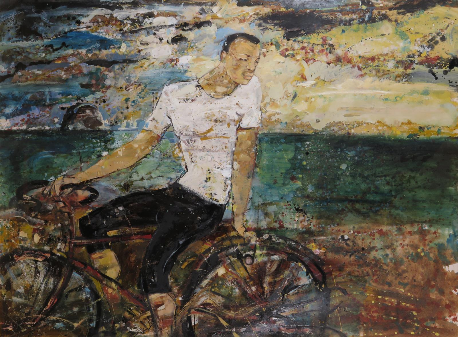‡Peter McLaren (Scottish b.1964) Figure in the Moonlight Signed twice and titled verso Oil on...