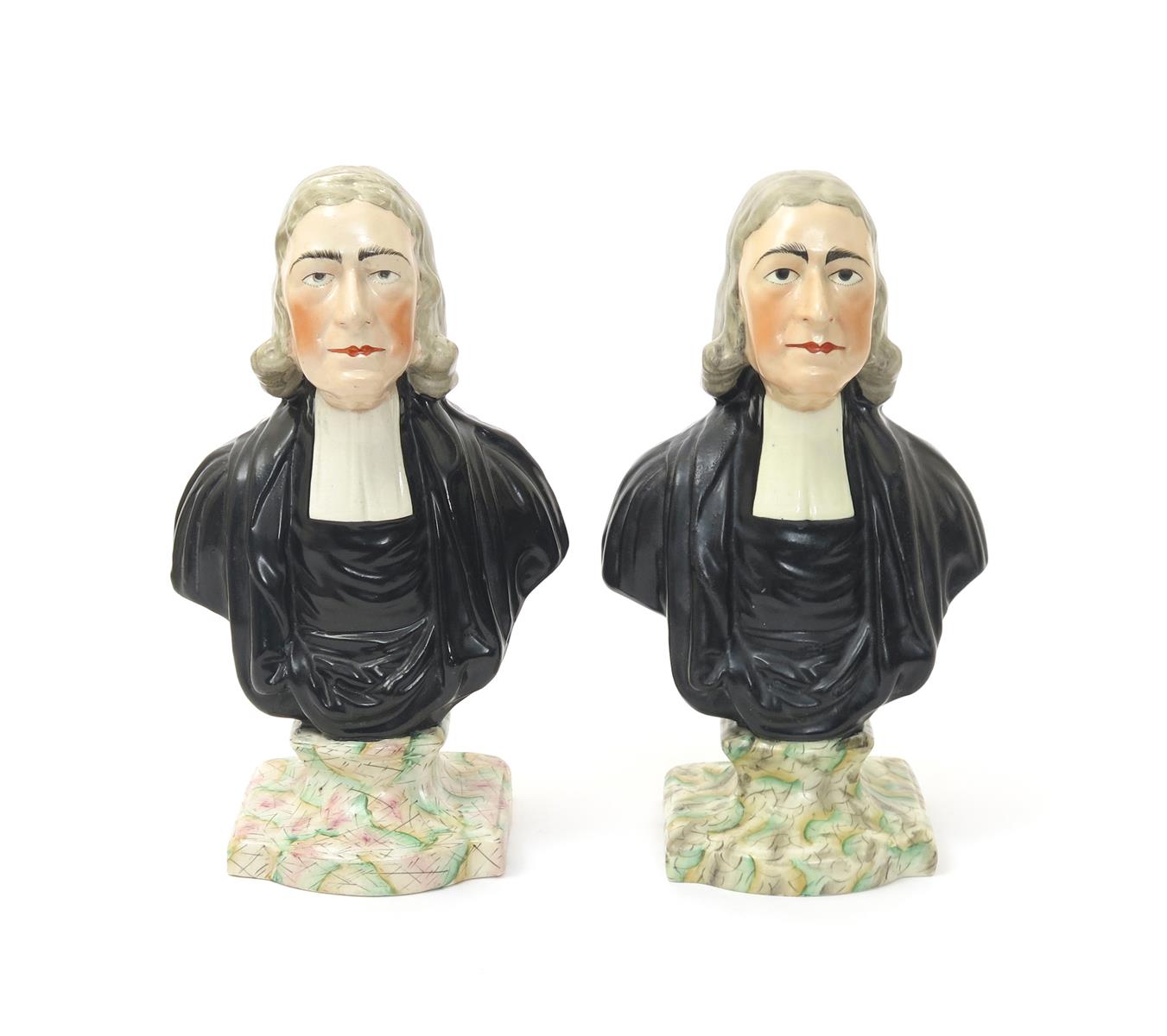 A matched pair of Staffordshire busts of John Wesley early 20th century