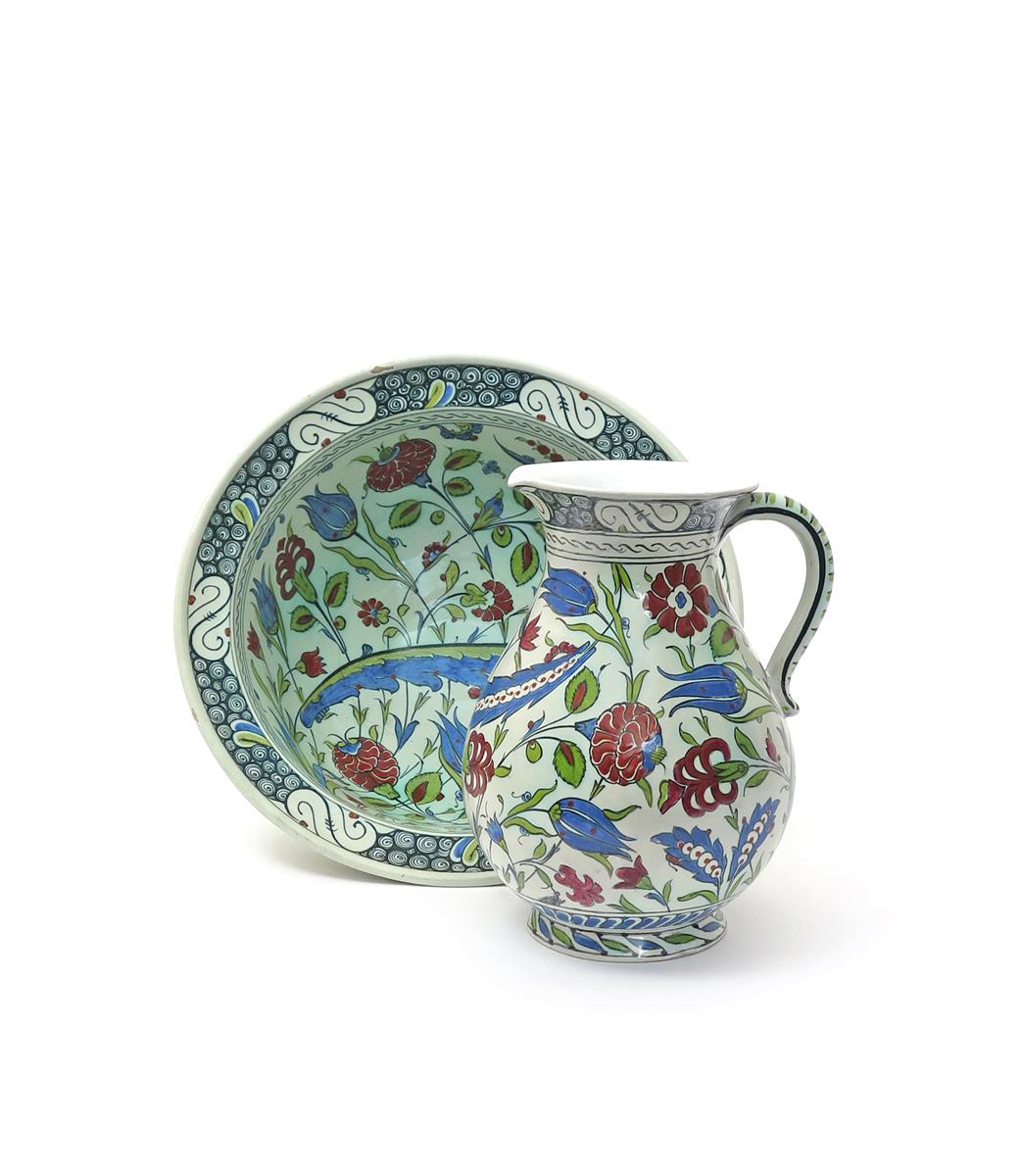 A large Cantagalli Iznik-style ewer and basin late 19th century
