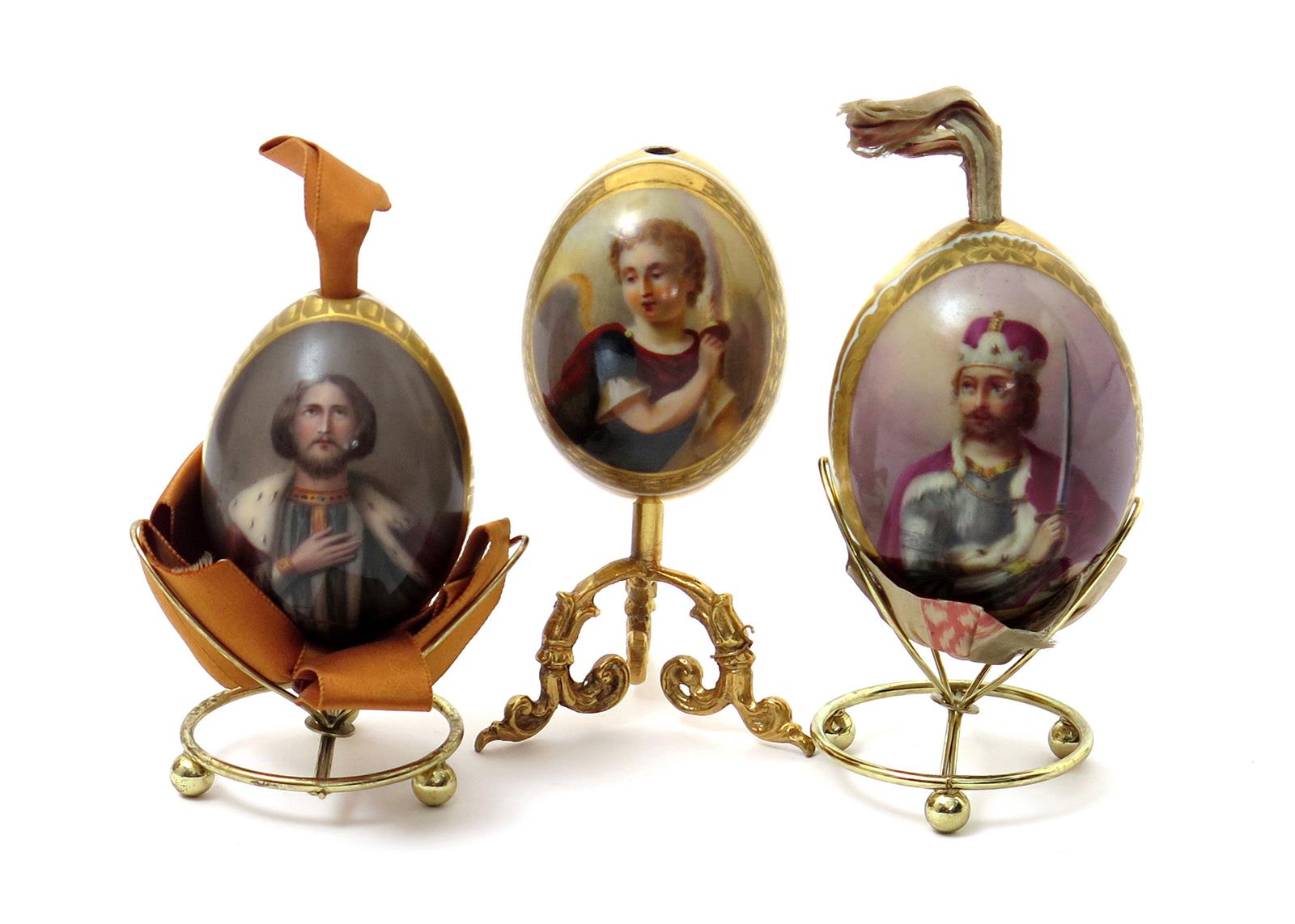 Three Russian porcelain Easter eggs 19th/early 20th century