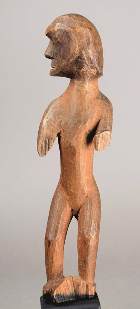 A Nootka / Salish standing figure British Columbia wood with the head turned to the left