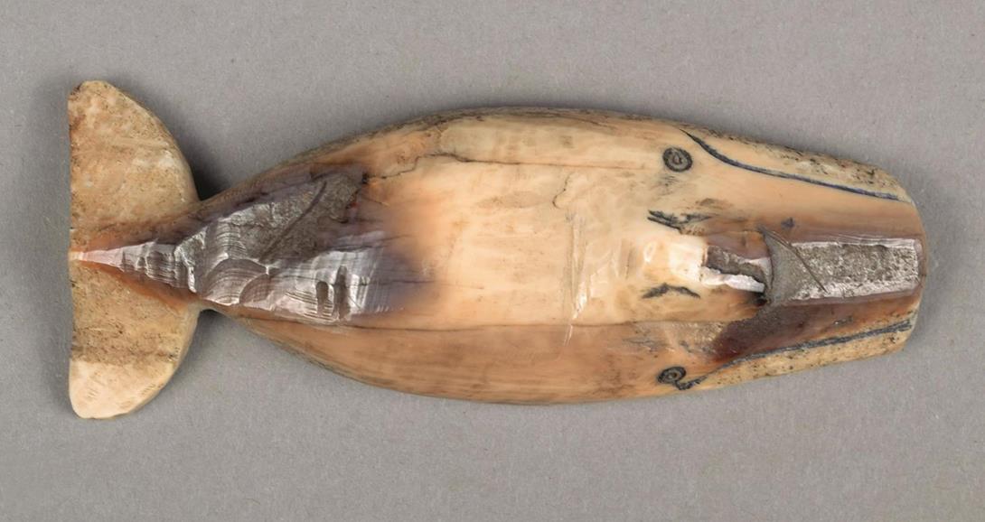 walrus ivory, with incised eyes and jaw outline with a blue pigment, 19th century,