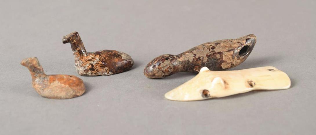 an Inuit seal amulet, pierced for attachment and an Inuit polar bear head attachment. (4)
