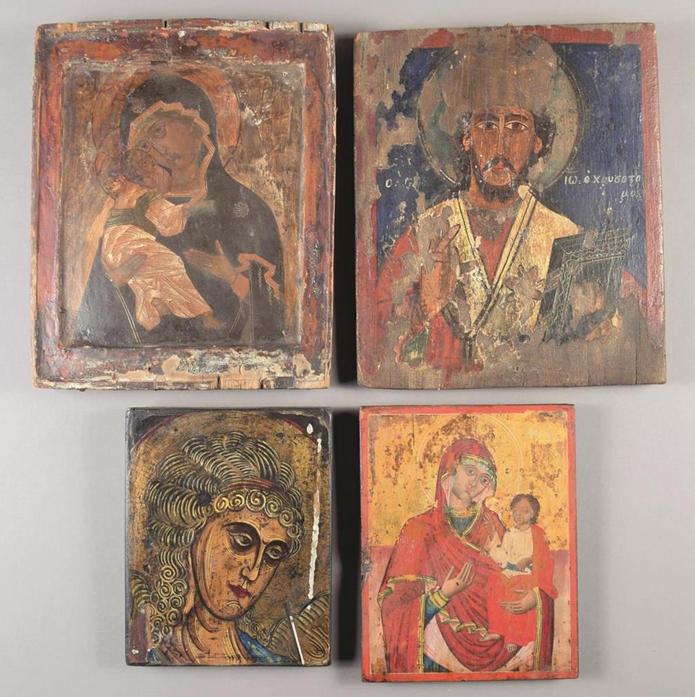 a painted icon, The Virgin and Child, inscribed, a painted icon, Christ, and another. (4)