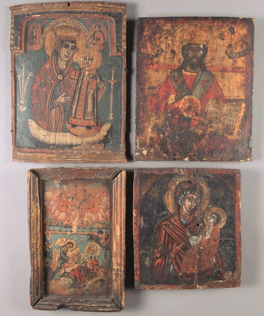 a Russian icon of St Nicholas, and two depicting the Virgin and Child. (4)