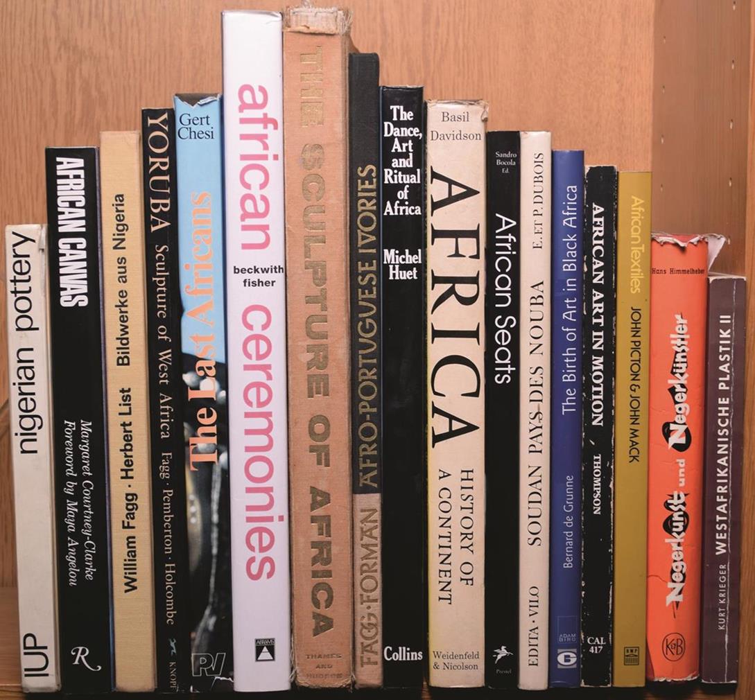 Fagg and Pemberton. Yoruba, Sculpture of West Africa; Beckwith and Fisher. African Ceremonies; Elisofon and Fagg. The Sculpture of Africa; Sylvia Leith-Ross. Nigerian Pottery; Michel Huet. The Dance, Art and Ritual of Africa; Fagg. Afro-Portuguese Ivories; Basil Davidson. Africa, History of a Continent; Elaine and Pierre Dubois. Soudan Pays des Nouba; Bernard de Grunne. The Birth of Art in Africa, Nok Statuary in Nigeria; Robert Farris Thompson. Africa Art in Motion; Picton and Mack. African Textiles; Margaret Courtney-Clarke. African Canvas; Kurt Krieger. Westafrikanische Plastik II; Hans Himmelheber. Negerkunst und Negerkunstler; Sandro Bocola. African Seats; Gert Chesi. The Last Africans; Fagg. Bildwerke aus Nigeria. (17)