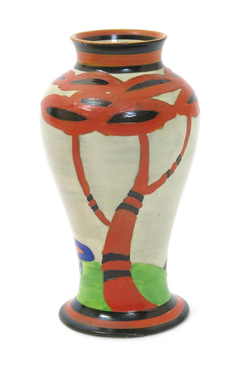 'Applique Red Tree' a Clarice Cliff Bizarre Mei Ping vase
