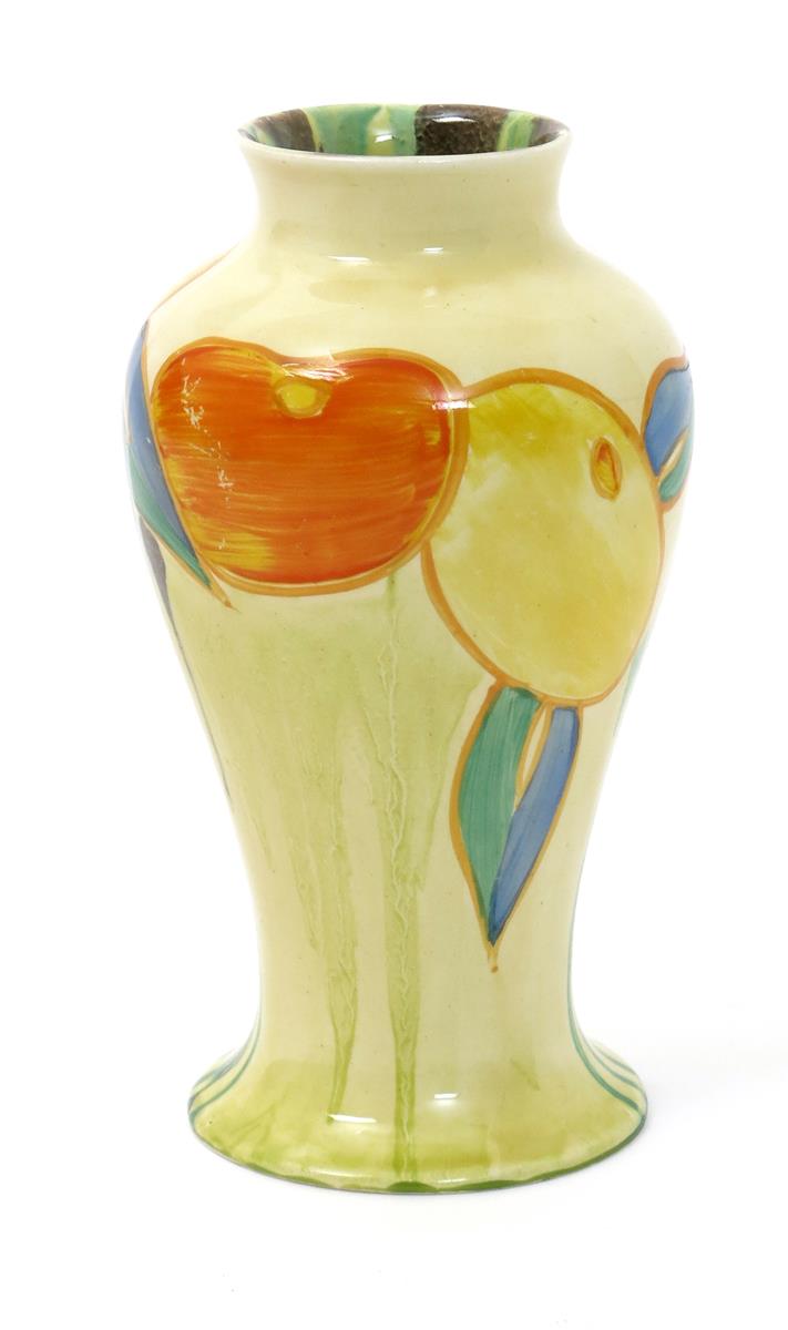 'Delecia Citrus' a Clarice Cliff Bizarre Mei Ping vase, painted in colours printed factory marks, small chip to foot rim, 15.5cm. high