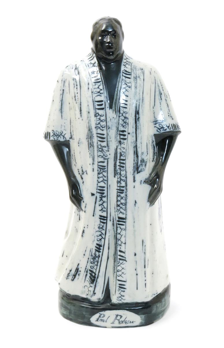 Paul Robeson as Othello a Briglin Pottery figure designed by Susan Parkinson, painted in blue-black, incised marks and numbered 24, 33.5cm. high